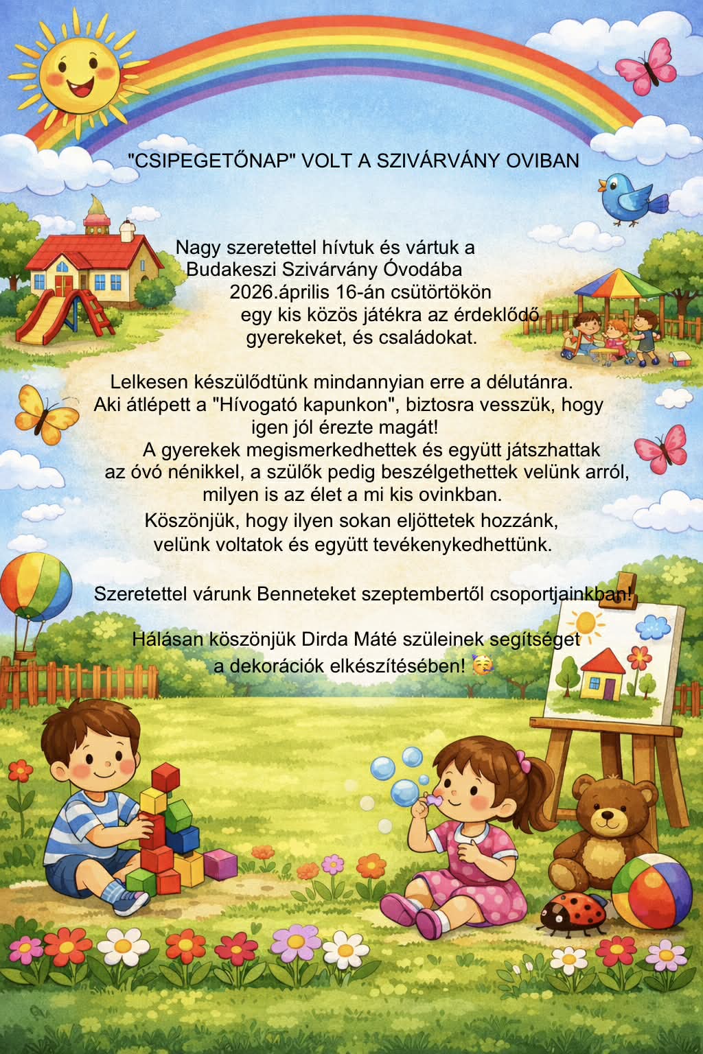 Óvodásaink nevében megköszönünk minden támogatást, adományt, legyen az bármily csekély, valamint az adók 1%-át is köszönettel fogadjuk.